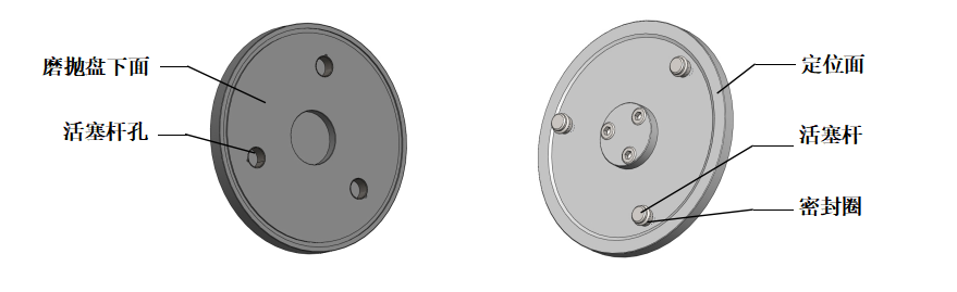 01  磨拋盤可快速更換,兩手拿住磨拋盤輕輕上提即可取下來;將另一個(gè)磨拋盤兩手拿平,目測磨拋盤的三個(gè)活塞桿孔與三個(gè)活塞桿基本對應(yīng)時(shí)落下,感覺其中一個(gè)孔對應(yīng)時(shí),輕微擺動磨拋盤使另兩個(gè)也對應(yīng)后將盤持平插入,再用手控壓一下,使磨拋盤下面與磨拋?zhàn)亩ㄎ幻嫱耆佑|。